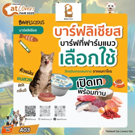 Product Highlights 2024 Company Name : Great Food Good Pet Company Limited Booth No : = A03 Brand : = BARFlicious(บาร์ฟลิเชียส)อาหารสุนัขและแมวเพื่อสุขภาพ Country : = Thailand Company URL : https://www.facebook.com/barflicious/ Company information : บาร์ฟลิเชียส บาร์ฟสมดุลสำหรับสุนัขและแมว สารอาหารครบถ้วน ตามหลักสากล AAFCO USA พัฒนาสูตรร่วมกับสัตวแพทย์ และนักโภชนาการอาหารสัตว์เลี้ยง บาร์ฟวัตถุดิบเกรดคนทาน ฉีกซอง พร้อมทาน อาหารที่เหมาะสมกับระบบย่อยของน้อง เพื่อผลลัพธ์ที่คนเลี้ยงชอบ ตัวแน่น ขนสวย ขับถ่ายเป็นก้อน ลดกลิ่นอึ สุขภาพดีในระยะยาว Product Detail – Promotion บาร์ฟลิเชียส […]
