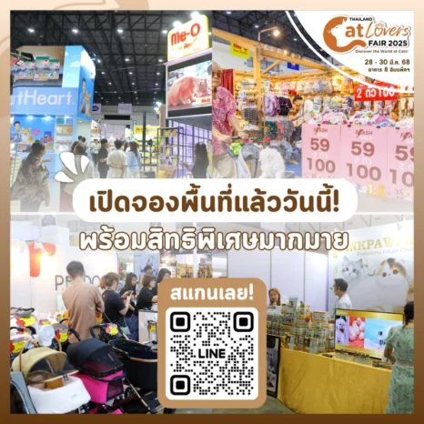 โอกาสพิเศษที่แบรนด์คุณไม่ควรพลาด เชิญแบรนด์สินค้าและบริการเกี่ยวกับน้องแมว มาร่วมสร้างประสบการณ์ที่น่าจดจำ ที่งาน Thailand Cat Lovers Fair 2025โอกาสมาถึงแล้ว งานแมวที่ใหญ่ที่สุดในไทย เปิดให้เจ้าของแบรนด์สินค้า และบริการต่าง ๆ เช่น อาหาร grooming ของเล่น เสื้อผ้า แฟชั่น และอีกมากมาย เกี่ยวกับน้องแมว ที่เป็นที่รักของคุณ ให้มาจัดแสดงสินค้า ภายในงาน โดยสามารถจองพื้นที่ เลือกทำเลดี ได้ก่อนใคร . ไม่ว่าแมวสายพันธุ์ไหน ก็มาเข้าร่วมงานของเราได้ทั้งนั้น โดยอีกหนึ่งไฮไลท์ของเรา ได้รับความร่วมมือจาก สมาคมแมวไทยโบราณนานาชาติ(TIMBA) ในการจัดกิจกรรมเพื่ออนุรักษ์สายพันธุ์แมวไทย หนึ่งในอัตลักษณ์แสดง Soft Power ของพวกเรา โดยจะเป็นยังไงบ้าง ต้องพาน้อง ๆ เข้ามาเจอกันในงานแล้วล่ะ สนใจจองพื้นที่ Add LINE : https://lin.ee/OV2lAV1Q การันตีผลงานจากผู้จัดงาน Dog Show และ Pet Variety! . จองก่อน มีสิทธิ์ก่อน […]