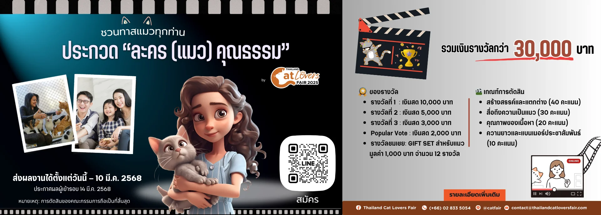 Calling all cat lovers! Join the creative video contest “Moral Cat Drama” by Thailand Cat Lovers Fair and compete for total prizes worth over 30,000 THB!
